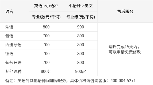 2.文档翻译:提供中英、中韩、中日、中俄、中法、中西、中阿、中葡、中德常用语种互译服务,及其他语种,请咨询客服400-004-5271。