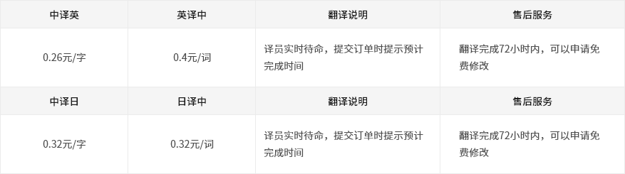 2.文档翻译:周一至周日8:30-24:00(重大节假日除外) 非工作时间顺延至工作时间处理。