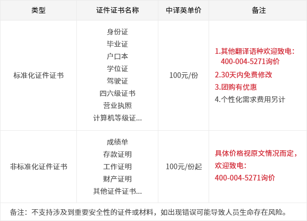 证件翻译统一按份报价,用户可以获得电子版译文,同时,还可免费申请加盖我公司公章的打印件,订单满1000元免运费(不含港澳台地区及偏远地区)。